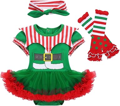 Chictry Vestito Natalizio Neonata Bimba Costume Da Elfo Completini Per Natale Costume Babbo Natale Pagliaccetto Tutine Tutu Fascia Scaldamuscoli Bambina Verde Rosso Amazon It Abbigliamento