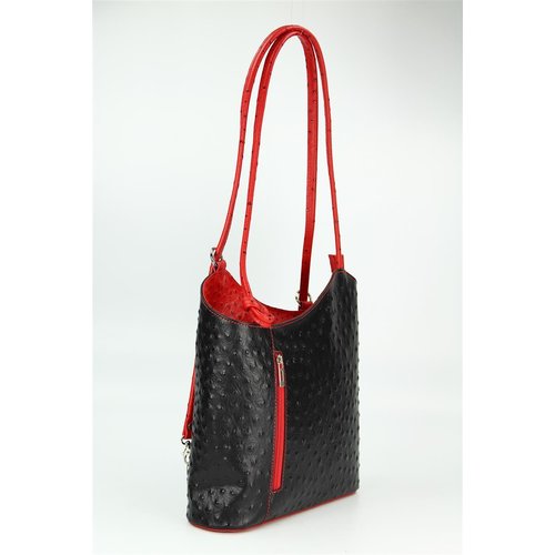 Belli Backpack Leder Tasche Rucksack Schwarz Rot Strauss Belli Sh